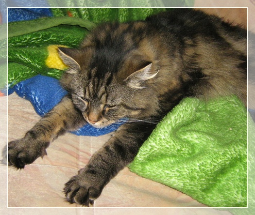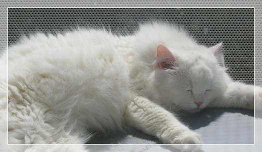Fiona habe ich durchs Fenster mit der Kamera erwischt wie sie es sich auf dem Tisch gemütlich gemacht hat, genießt so richtig die Sonne .....................