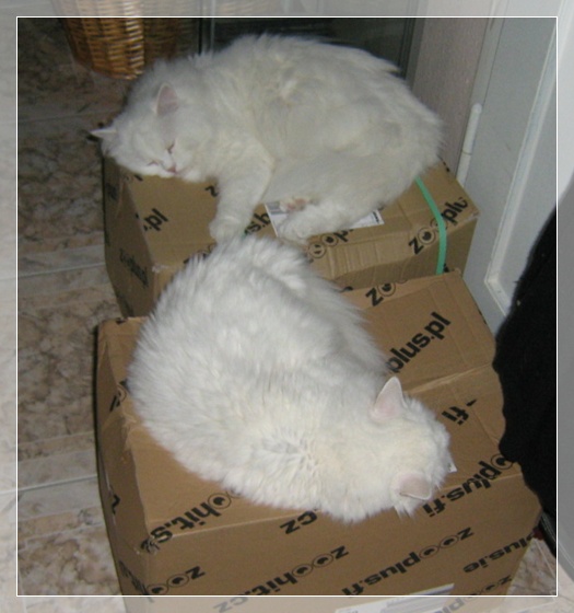 Meine zwei Diven haben die Pakete sofort unter Beschlag genommen ..............